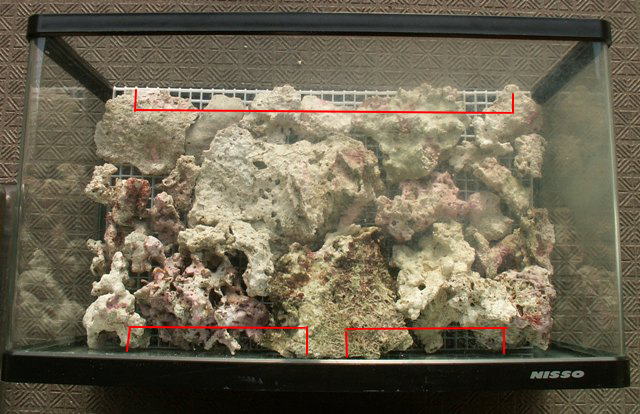上部濾過槽には濾過材ではなく、数センチの大きさのライブロックを入れます。