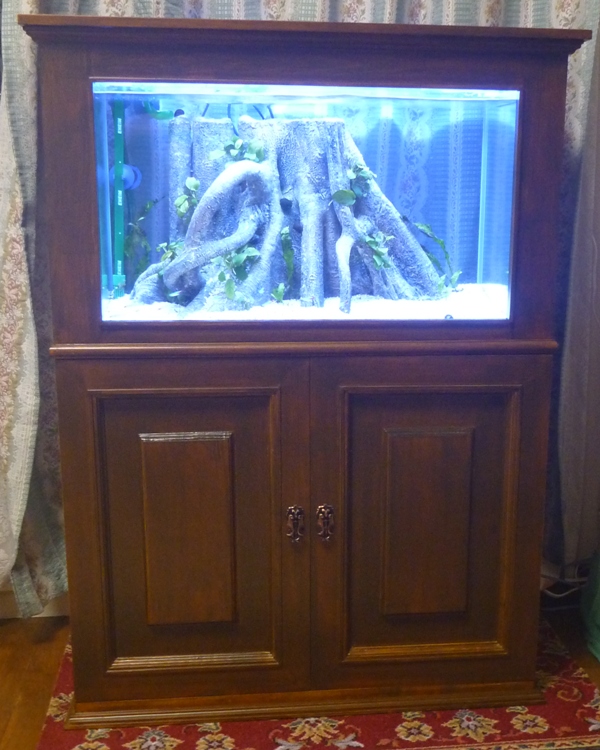 総合的に考えますと、家具調水槽台で淡水という方向になりました。