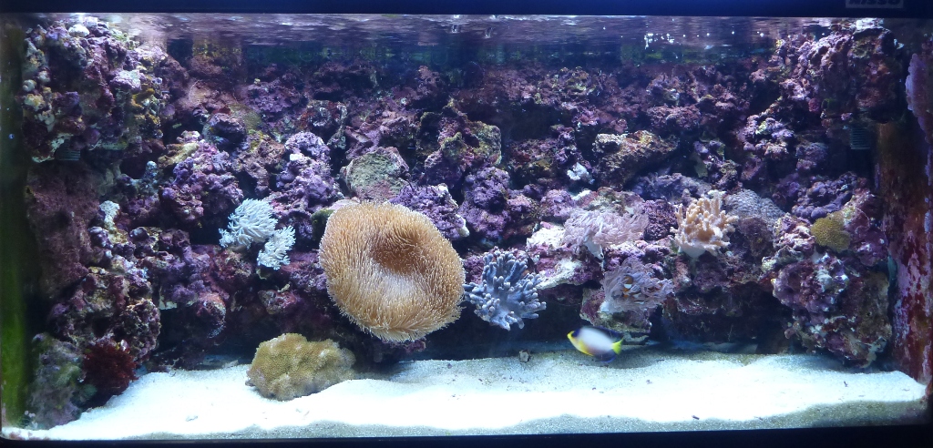 それには、ミドリイシもしくはその他の珊瑚も置ける様にオーバーハングにひな壇あるいは階段に近い状態にすべくいくつかのライブロックを撤去しました。