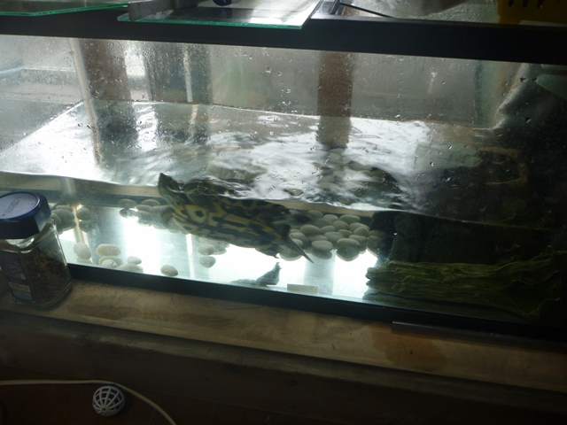 この亀さんの世話も大変です。^^