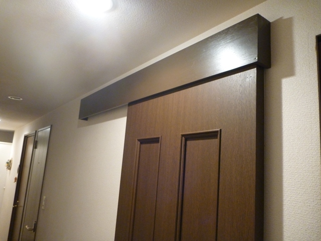 その為、ドアの開閉の際 廊下ではつっかえる事があり、通りに不便でアウトセット上吊り引き戸に自分で改造した訳です。